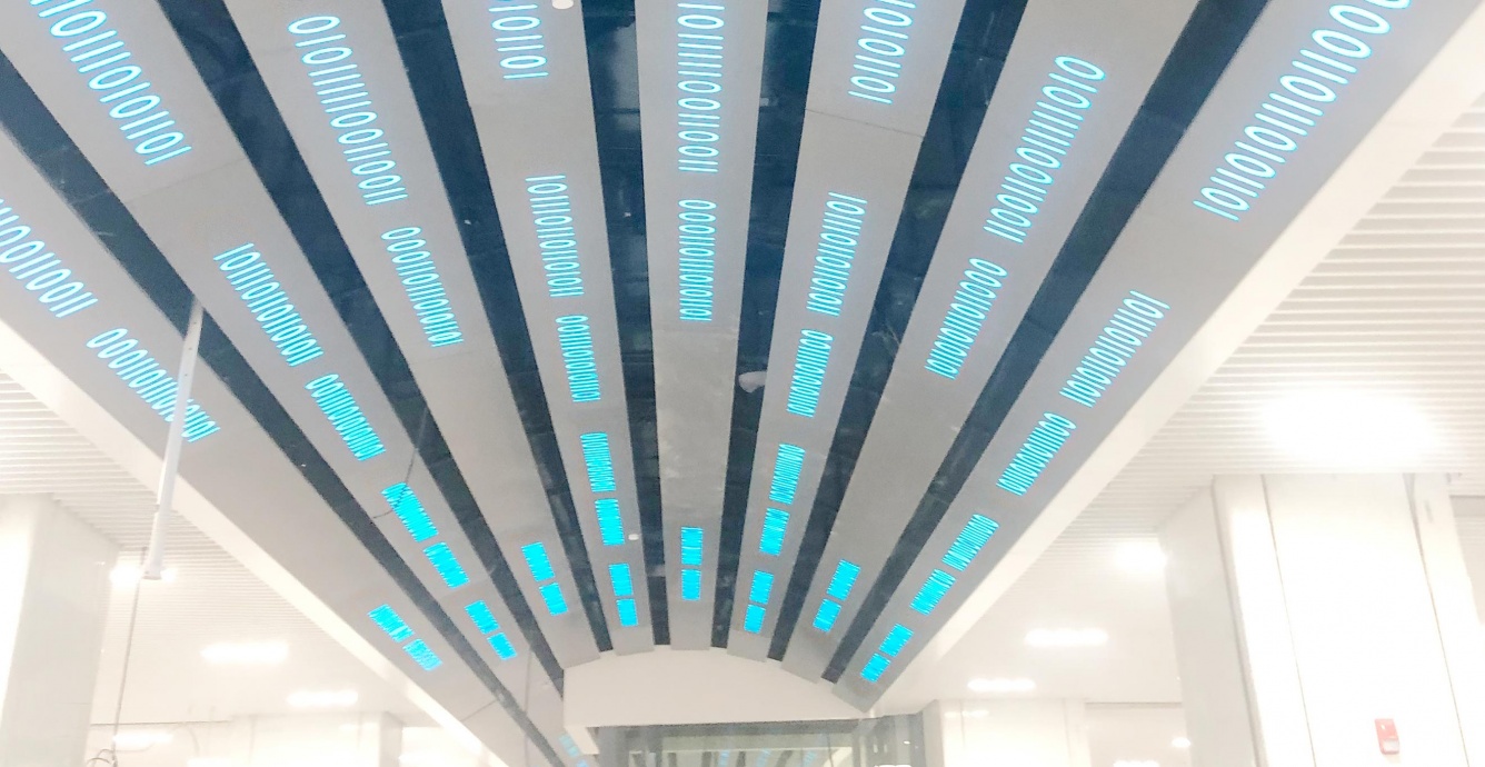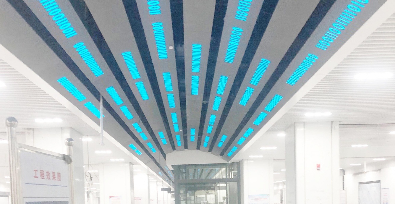 以數(shù)碼符號和二維碼為元素,塑造具有未來感的科技空間,結(jié)合燈光藝術(shù),如科技之眼俯瞰這個世界日新月異的變化。